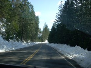Snow up in the mountains, the temperature here was right around 65 degrees.