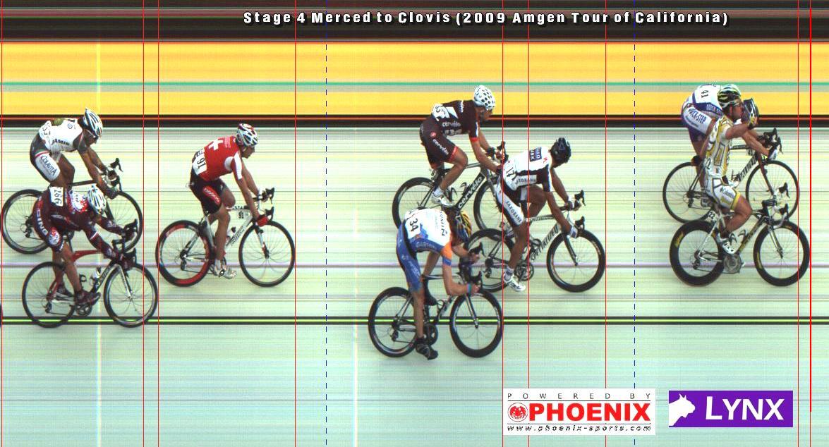 The camera says it is. Here is a picture of the sprint finish from day four here at the Tour of California. This gives you an idea of how close these guys come after riding for 120 miles through the mountains.