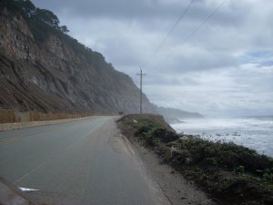 Today (stage 2) was much more of the same. Torrential downpours plagued much of the route as we took to the epic California Route 1, following the coastline from Sausulito to Santa Cruz. Just about ten minutes into the race, the course looked like this.